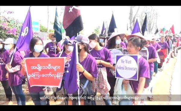 နိုင်ငံတကာအမျိုးသမီးများနေ့မှာ အင်းသူအင်းသားတွေ စစ်အာဏာရှင်ဖြုတ်ချရေး ဆန္ဒပြကြပါတယ်။