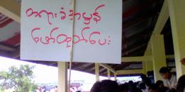 ယမန်နေ့က ပြုလုပ်သော ဦးကျော်မောင်ချေ အသုဘတွင် သူ့အား သတ်ဖြတ်သူ တရားခံ အစစ်အမှန်များကို ဖေါ်ထုတ်ပေးရန် အသုဘ လာသူများက ပိုစတာများ ကိုင်ဆောင်ပြီး...