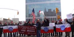 ၂၂၇- နှစ်မြောက် ရခိုင့်အချုပ်အချာ အာဏာကျဆုံးသည့်နေ့တွင် အမေရိကန်နိုင်ငံရောက် ရခိုင် အမျိုးသားများက နယူးယောက်မြို့ရှိ ကမ္ဘာ့ ကုလသမဂ္ဂရုံးချုပ်ရှေ့၌...