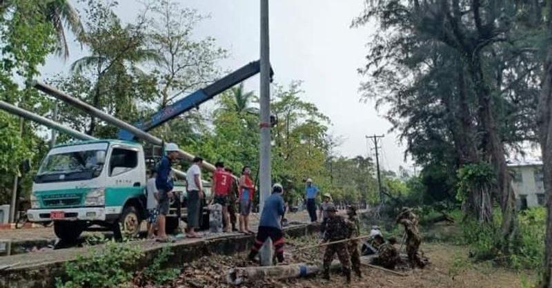 ရခိုင်ပြည်နယ်မြို့တော်၊ စစ်တွေတွင် မုန်တိုင်းကြောင့် ပျက်စီးသွားသည့် လျှပ်စစ်ဓာတ်အားလိုင်းများကို အိမ်သို့ ပြန်လည်သွယ်တန်းရာတွင် ငွေကြေးတောင်းခံမှုများ ရှိနေသည်ဟု ဒေသခံများက ပြောသည်။