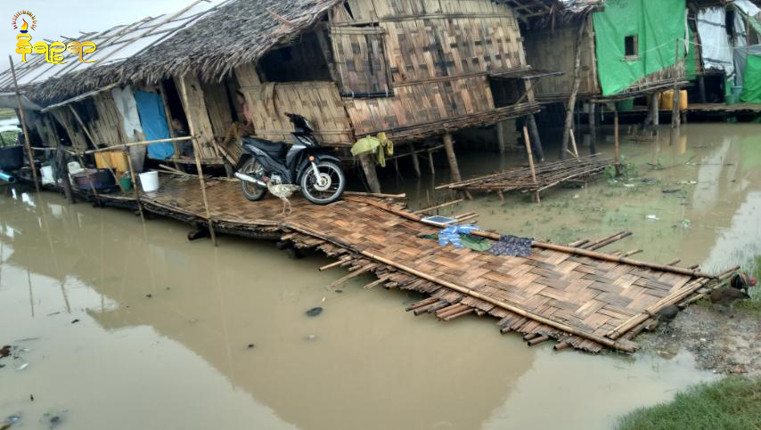 ရခိုင်ပြည်နယ်တွင် ယခုရက်ပိုင်း မိုးအဆက်မပြတ် ရွာသွန်းနေမှုကြောင့် စစ်ဘေးရှောင် စခန်းအများအပြား ရေနစ်မြုပ်နေကြသည်။