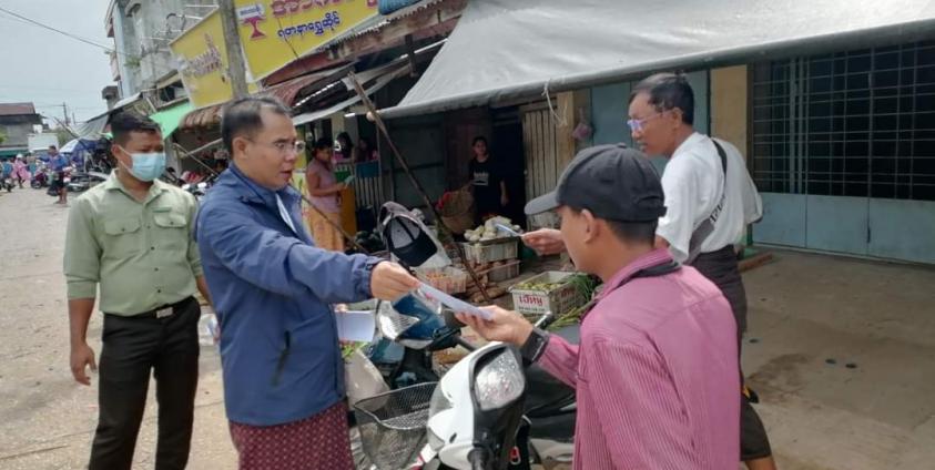 စစ်ကောင်စီ၏ ဝါဒဖြန့် စည်းရုံးရေး လက်ကမ်းစာစောင်များကို ဇွန်လ ၂၃ ရက်နေ့၊ နံနက် ၉ နာရီအချိန်ခန့်မှ စတင် ၍ ဇွန်လ ၂၅ ရက်နေ့ အထိ ၃ ရက်ဆက်တိုက် လိုက်လံဖြန့်ဝေခဲ့ခြင်းဖြစ်သည်ဟု မြို့ခံများက ပြောသည်။