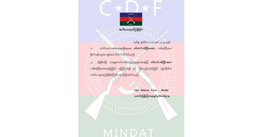 မကွေးတိုင်း၊ ယောနယ်ဘက်က စစ်ကောင်စီစစ်ကြောင်းသည် ချင်းပြည်နယ်၊ မင်းတပ်ဘက်ကို စစ်ကြောင်းထိုး လာနိုင်သောကြောင့် မင်းတပ်-ကံကြီး- ဆော လမ်းမကြီးကို ယနေ့ ဇူလိုင်၁၃ ရက်မှ စတင်၍ ဖြတ်သန်းသွား လာခွင့် ပိတ်လိုက်ကြောင်း ချင်းကာကွယ်ရေးတပ် - မင်းတပ်က ထုတ်ပြန်သည်။