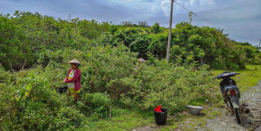 ပုံစာ - ကျောက်ဖြူမြို့နယ်က ကြောင်ပန်းသီးခူးဆွတ်နေသူအား ၂၀၂၃ ခုနှစ် ဇူလိုင်လ ၂၀ ရက်နေ့က တွေ့ရစဉ်။