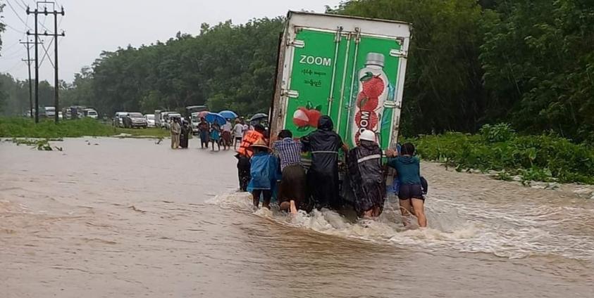 ကားလမ်းရေကျော်မှု ဖြစ်ပွားနေသည့် နေရာတွင် လက်ရှိ ကားများ ဆိုင်ကယ်များ ဖြတ်သန်းသွားလာ၍ ရနေ သေးသော်လည်း မိုးဆက်လက်ရွာသွန်းနေပါက ဖြတ်သန်းသွားလာရန် အဆင်မပြေနိုင်တော့ကြောင်းလည်း ဒေသခံများက ပြောသည်။