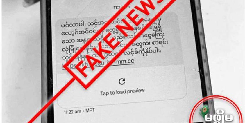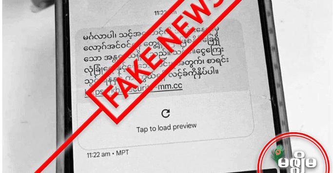 ဖုန်းမက်ဆေ့ (SMS) တွင် KBZ Bank အမည်ဖြင့် “မင်္ဂလာပါ၊ သင့်အကောင့်ကို အခြားနေရာမှ လော့ဂ်အင် ဝင်ရန် တွေ့ရှိရပြီး ဖြစ်နိုင်ခြေရှိသောအန္တရာယ်ရှိပါသည်။ သင်၏ငွေကြေးလုံခြုံရေးနှင့် ငွေဘေးကင်းမှု အတွက်၊ စာရင်း သွင်းရန်နှင့် ကာကွယ်ရန် လင့်ခ့်ကိုနှိပ်ပါ” ဟုရေးသားထားပြီး လင့်တခုနှင့်တွဲလျက် စာတို ပေးပို့လျက်ရှိသည်။