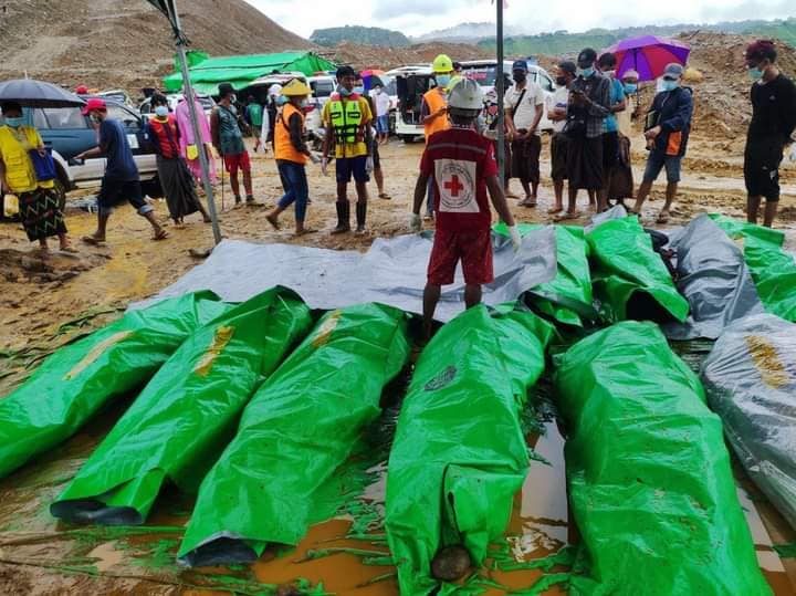 မနကျေးရွာအနီးက ကျောက်စိမ်းလုပ်ကွက်ထဲ ကယ်ဆယ်ရေးဆောင်ရွက်နေသူတစ်ဦး က “ဟုတ်တယ်ဗျ။ ဒီနေ့ ညနေအထိ တွေ့တာက ၂၅ လောင်းရှိပြီ။ အခုလည်း ထပ်ရှာနေတုန်းပါ။ အလောင်းတွေက ထပ်ထပ်ပေါ် လာ တာဗျ။ ၁၃ ရက်နေ့ကတည်းကဆိုတော့ တွေ့သလောက် အလောင်း တော် တော်များများက ပျက်စီးနေပြီ။ ဆို လိုချင်တာက ရုပ်တွေ ပျက်နေပြီဗျ” ဟု ပြောသည်။