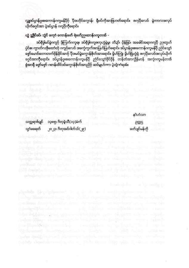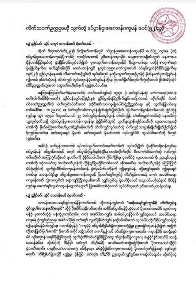 ထို့ကြောင့် မိမိတို့ မွန်အမျိုးသား လွတ်မြောက်ရေး တပ်မတော် (MNLA) ကို ဝိုင်းဝန်းကူညီအားပေး လုပ်ဆောင် သင့်သလို အမျိုးသား၊ အမျိုးသမီးမရွေး ကာလအပိုင်းအခြားနှင့် မိမိတို့လူမျိုး၏ တပ်ဖွဲ့ထဲ ဝင်ရောက်တာဝန် ထမ်းဆောင်ကြဖို့ သဝဏ်လွှာမှာ နှိုးဆော်ထားသည်။