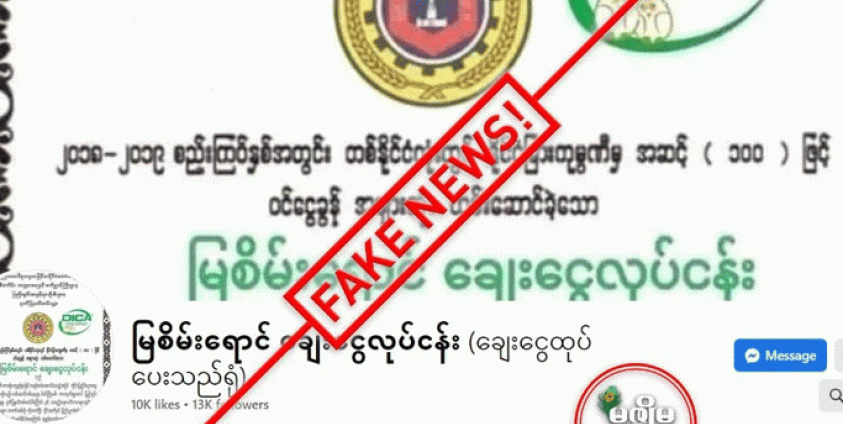 မဇ္ဈိမ၏သတင်းဖတ်ရှုသူများအနေဖြင့် သတင်းတုဟုသံသယရှိသည့် အချက်အလက်များ၊ သတင်းဆောင်း ပါးများ၊ သတင်းမှားများကို ယခုလင့် - https://bit.ly/3x5qnf5 သို့ ဝင်ရောက်ဖြည့်စွက် ရေးသားပေးပို့ မေးမြန်းနိုင်ပါသည်။