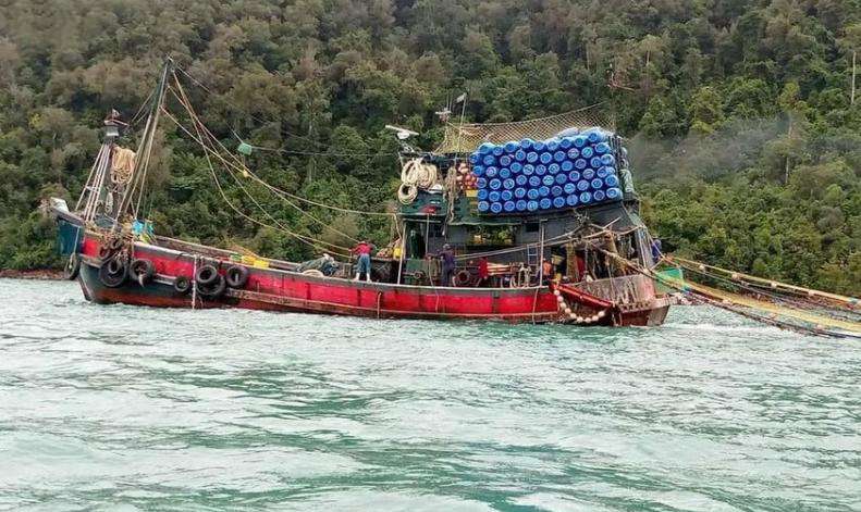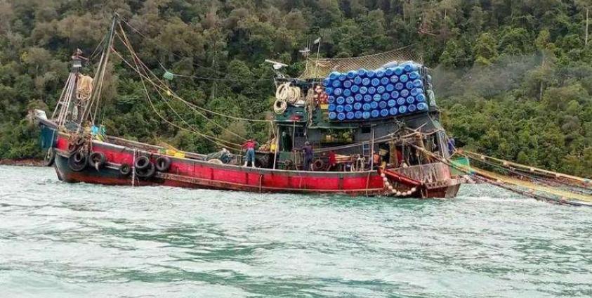 မြန်မာ့ပင်လယ်ပြင် ငါးဖမ်းဥပဒေကို ဖေါက်ဖျက်ပြီး ကမ်းနီးတွင် ငါးဝင်ခိုးဖမ်းနေသည့် ကမ်းဝေးလှေကြီး