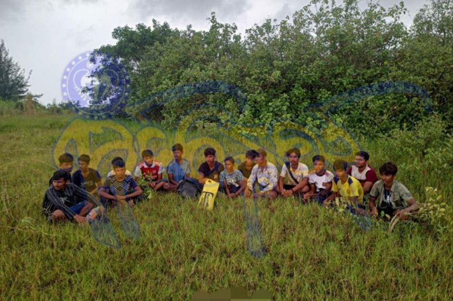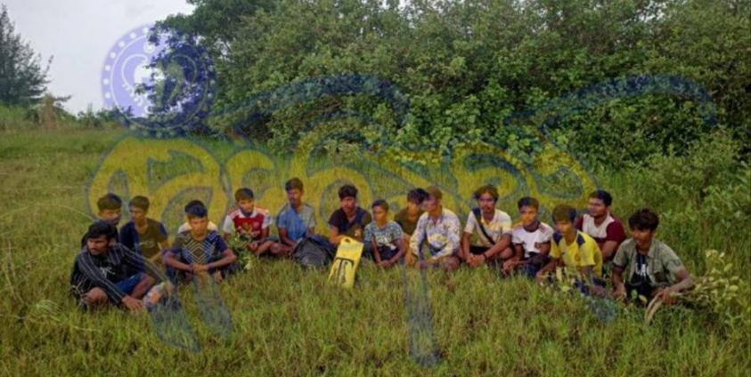 ပုံစာ - မောင်တောမြို့နယ်၊ ဂေါ်ဒူသာရချောင်းဝနှင့် မှိဝင်ချောင်းဝကြားတွင် တရားမဝင် နယ်စပ်ဖြတ်ကျော် ဝင်ရောက်လာသည့် မွတ်ဆလင်များအား ဖမ်းဆီးထားသည်ကို ဩဂုတ်လ ၁၄ ရက်နေ့တွင် တွေ့ရစဉ်။ ဓာတ်ပုံ - ရခိုင့်နေ့စဉ်