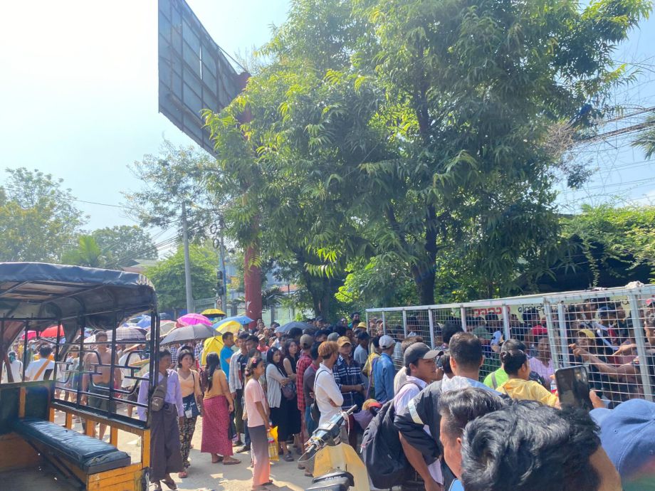 Photo - Credit (တရုတ်ပြည်တွင်း ဝင်ရောက် အလုပ်လုပ်ကိုင်ရန်အတွက် တိုကင်နံပတ်ရယူရန် လာရောက် စောင့်ဆိုင်းသူများ)