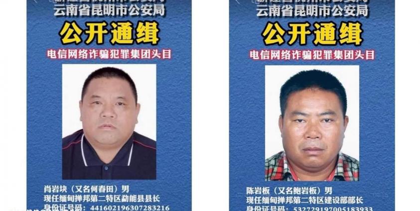 အွန်လိုင်း ငွေလိမ်ဂိုဏ်များနှင့် ပတ်သက်ဆက်နွယ်သည်ဟု ယူဆသည့် UWSA ၏ ဆောက်လုပ်ရေးဌာနကြီးမှူး ပေါက်အိုက်ပန်း နှင့် မိုင်းလင်းခရိုင်မှူး အိုက်ဟော့တို့ ဖြစ်ပြီး၊ ထိုသူ ၂ဦးကို ဖမ်းမိပါက တရုတ်ယွမ် တစ်သိန်းမှ ငါးသိန်း အထိ ဆုကြေးပေးမည်ဟုလည်း တရုတ်နိုင်ငံဘက်မှ ယခုလ (အောက်တိုဘာလ ၁၂)ရက်နေ့ တွင် ဖမ်း ဝရမ်းထုတ်ခဲ့သည်။