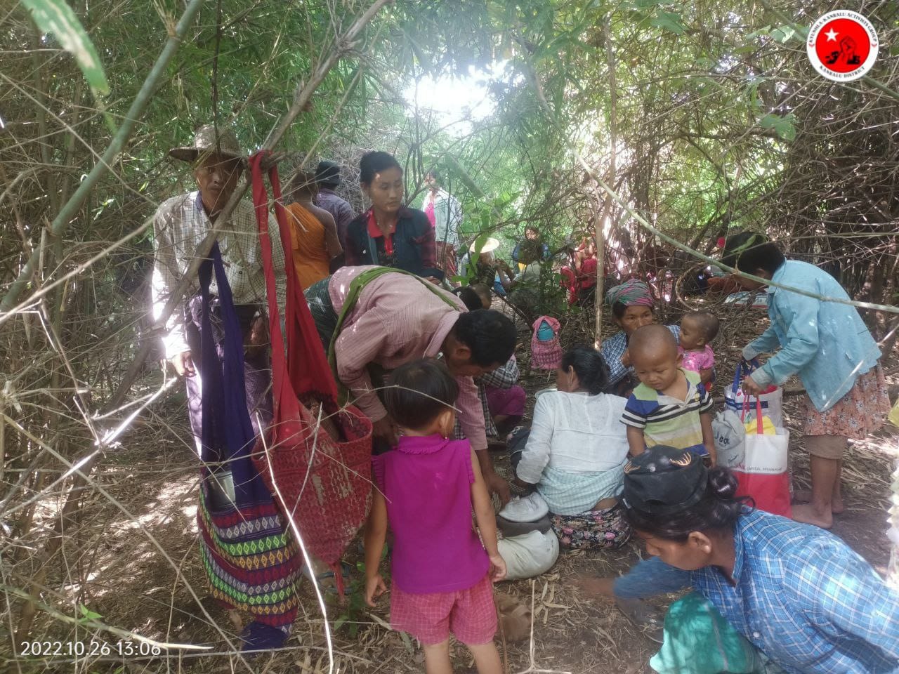 “ကိုးတောင်ဘို့၊ ချပ်တင်း၊ ပင့်သာက စစ်ကောင်စီတပ်ရဲ့ အထိုင်စခန်းတွေနဲ့ နီးတဲ့အခါကျတော့ ရွာထဲမှာမနေရဲ တော့ဘဲနဲ့ ဒီအထိုင်စခန်းတွေနဲ့ ဝေးတဲ့နေရာ တောထဲမှာဘဲ တဲထိုးနေကြတာမျိုးတွေ ရှိတယ်။ နောက်စစ်ရှောင် စခန်းတွေမှာ နေကြတာရှိတယ်။ တချို့ကျတော့လည်း မီးရှို့ခံရလို့ ရွာထဲမှာမနေရဲတာ နေစရာမရှိတော့ တာ ပေါ့။ ပင့်သာတိုက်နယ်ထဲ ဝင်တဲ့ဟာကဆိုရင် သူတို့ သတင်းကြိုရထားတာပေါ့။ သူတို့ ကြိုပြီးရှောင်နေကြတာ ပေါ့” ဟု ပြောသည်။