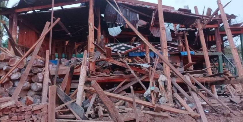 ဝမ်အောင်း (ယင်းတလဲ) ကျေးရွာကို စစ်ကောင်စီက လေယာဉ်ဖြင့်ဗုံးကြဲခဲ့စဉ် ပျက်စီးသွားတဲ့နေအိမ်