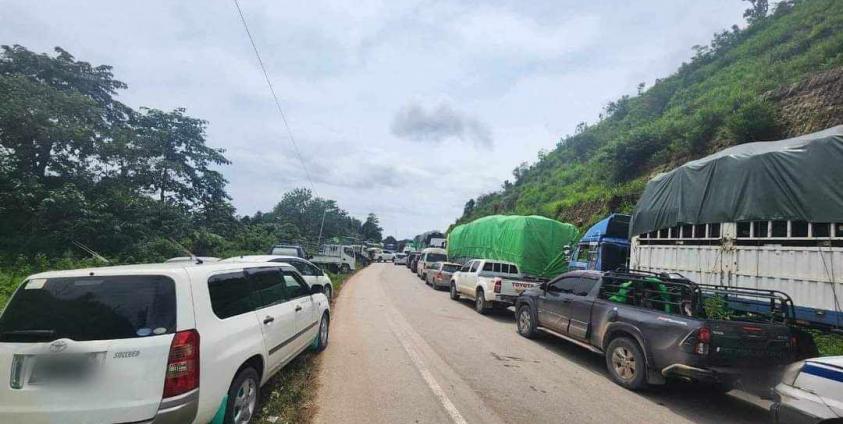 ရှမ်းပြည်နယ်မြောက်ပိုင်း တိုက်ပွဲဖြစ်စဉ်များကြောင့် ကုန်သွယ်ရေးလမ်းကြောင်း ပြောင်းလဲအသုံးပြုကြသည့်ကားများ မြဝတီ-ဖားအံ-ရန်ကုန် ကားလမ်းပိုင်း စစ်တပ်ဂိတ်နေရာများတွင် ယာဉ်တန်းပိတ်ဆို့မှု နေ့စဉ်ဖြစ်ပွားနေကြောင်း မြဝတီ မြို့ခံကုန်သည်များက ပြောသည်။