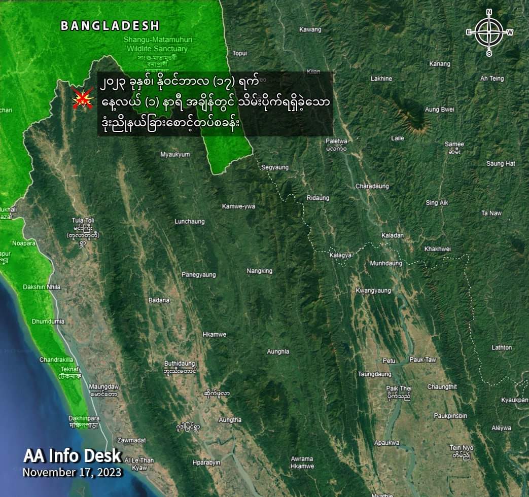 ရခိုင်တွင် နိုဝင်ဘာလ ၁၃ ရက်မှစတင်ကာ AA နှင့် စစ်ကောင်စီတပ်တို့ တိုက်ပွဲပြန်လည်ဖြစ်ပွားနေခြင်းဖြစ်သည်။