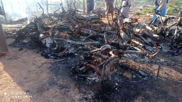 ဆိုင်ကယ်တွေနဲ့ ရေလုပ်သားတဲတွေ မီးရှို့ဖျက်ဆီးသွားတဲ့ စစ်ကောင်စီတပ်က နေအိမ်တွေနဲ့ ဈေး ဆိုင် နံရံတွေမှာ"PDF အားပေးရင် ဒီထက်ပိုဆိုးမယ်၊ ဆန္ဒထပ်ပြရင် ဒီထက်ပိုဆိုးမယ်''ဆိုတဲ့ ခြိမ်း ခြောက်စာတွေ ရေးသားသွားပါတယ်။