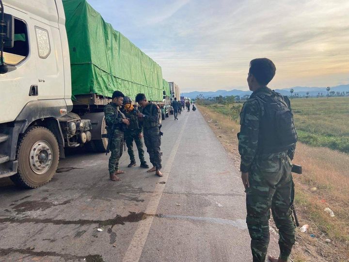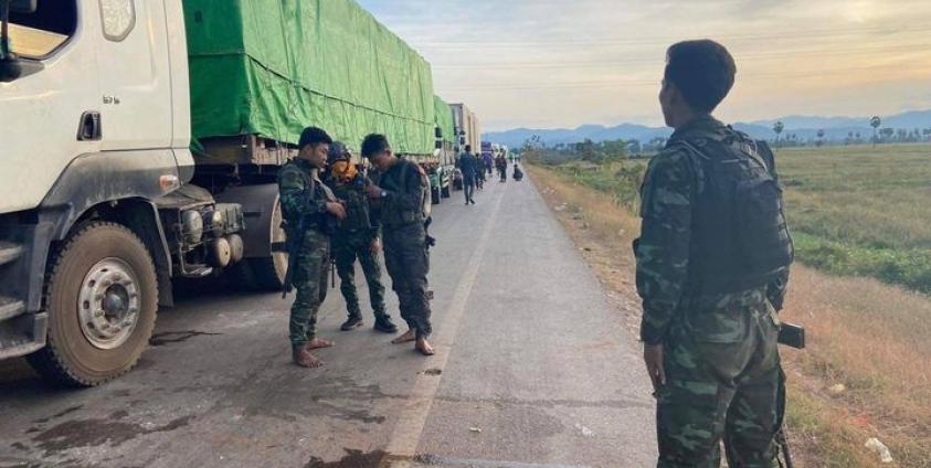 ပုံစာ - မြဝတီ - ကော့ကရိတ် အာရှလမ်းမတွင် တော်လှန်ရေးတပ်ဖွဲ့များ လုံခြုံရေးယူထားသည်ကို ဒီဇင်ဘာ ၅ ရက်နေ့က တွေ့ရစဉ်။ ဓာတ်ပုံ - CJ