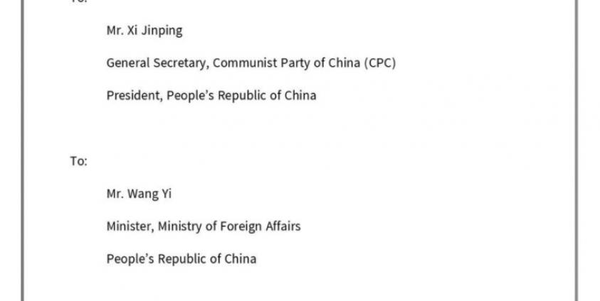 တရုတ်နိုင်ငံအနေနဲ့ မြန်မာ ပြည်သူလူထုရဲ့ သဘောထားကို အလေးထား လေးစားပြီး ဂရုပြုဖို့အပြင် တော်လှန်ရေးကို နှောက်ယှက်ပြီး စစ်ကောင်စီကို အားပေးအားမြောက် ကြားဝင်မှုတွေကို ရပ်တန်းကရပ်ပြီး နှစ်နိုင်ငံ ချစ်ကြည်ရေးကို ညှိစွန်းစေမဲ့ ဘုံအကျိုးစီးပွားကို ပျက်ပြားစေမဲ့ မကြေမနပ်ဖြစ်စေမဲ့ လုပ်ရပ်တွေကို မလုပ်ဖို့ အိတ်ဖွင့်ပေးစာမှာ တောင်းဆို ထားပါတယ်။