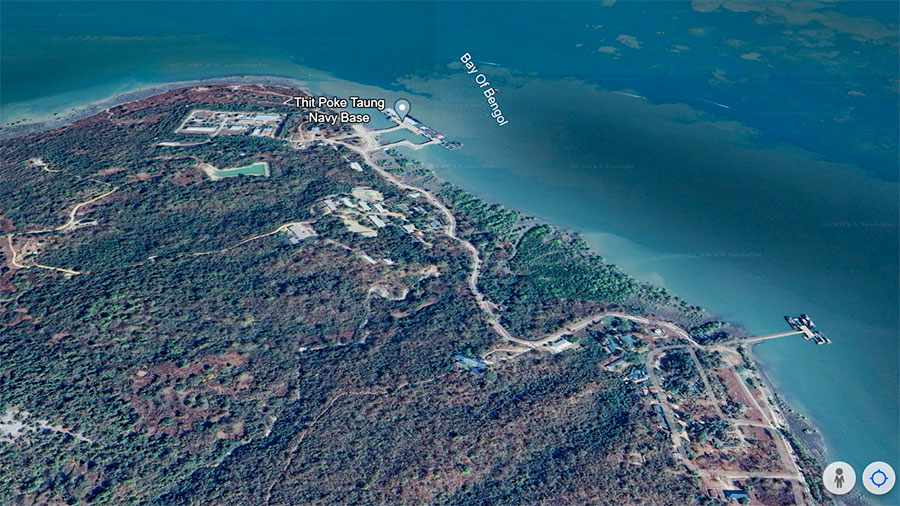 ဓညဝတီရေတပ်သည် တရုတ်ရေနက်ဆိပ်ကမ်းစီမံကိန်းရှိရာ မဒေးကျွန်းနှင့် ရေကြောင်းခရီး မိနစ်လေးဆယ်ကြာ အကွာတွင် တည်ရှိသည်။