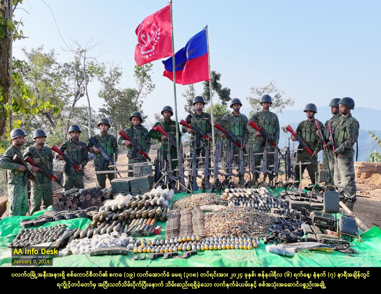 ပလက်ဝဒေသရှိ တရွန်အိုင်ဗျူဟာကုန်းကို သိမ်းပိုက်ပြီးနောက် AA စစ်သည်တော်များ၏ အောင်ပွဲခံနေသည့်ပုံ။