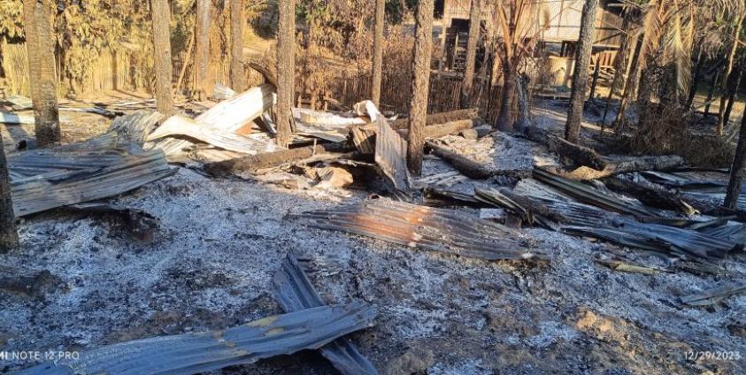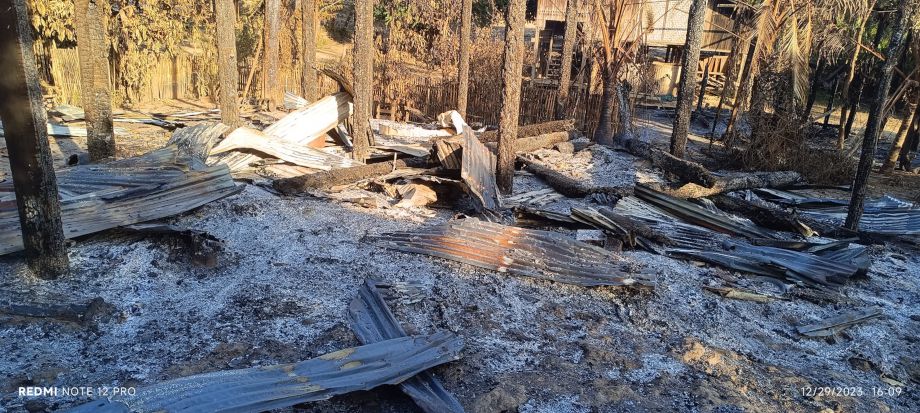 “ရွာထဲမှာလူတွေရှိနေတဲ့အချိန်ဝင်လာတာ လူနေ နေတဲ့အိမ်တွေကို အကုန်ဆင်းခိုင်းပြီး မီးရှို့တယ် ။ ရွာအရှေ့ပိုင်းလောက်ကစရှို့တာ အရှေ့ပိုင်းမှာနေတဲ့အဖွားတစ်ယောက်ကို အိမ်ပေါ်ကနေဆင်းခိုင်းတော့ အဲ့အဘွားက ရှို့ချင်လည်းရှို့သွားတော့ သူကတော့လေဖြတ်နေလို့ဘယ်မှမသွားနိုင်ဘူးဆိုပြီး ပြောတော့ အဲ့တစ်အိမ်ပဲချန်ခဲ့လိုက်တယ်။ အိမ်ခြေကတော့ စုစုပေါင်း(၃၀)ကျော်လောက်ပါသွားတယ်။” ဟု ၎င်းက ကေအိုင်စီကို ယနေ့ ပြောသည်။
