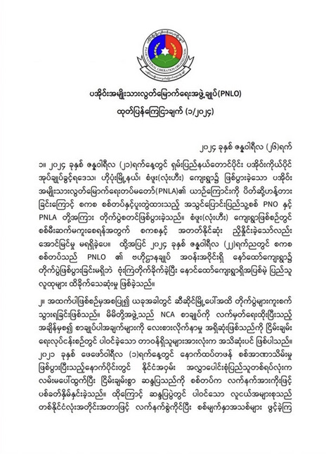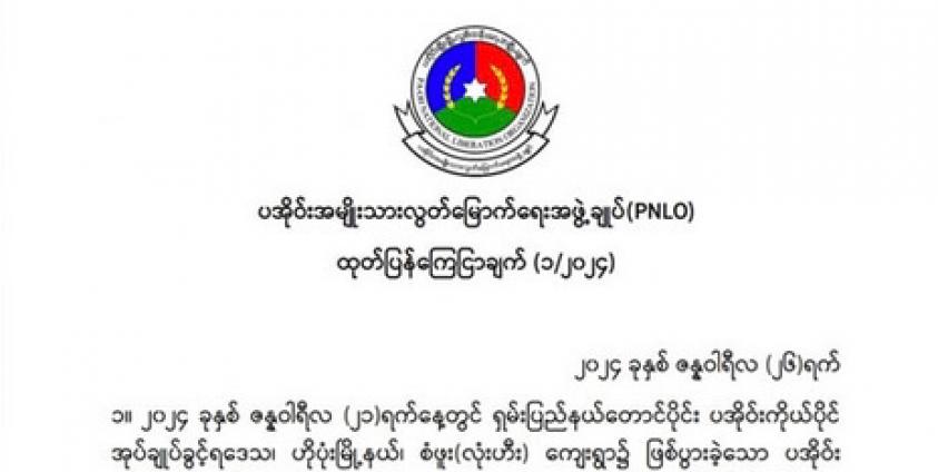 တစ်နိုင်ငံလုံးပစ်ခတ်တိုက်ခိုက်မှုရပ်စဲရေး သဘောတူစာချုပ် (NCA) လက်မှတ်ရေးထိုးထားသော ပအိုဝ်းအမျိုးသားလွတ်မြောက်ရေးအဖွဲ့ချုပ် (PNLO) က စစ်ကောင်စီကို တိုက်ခိုက်မည်ဖြစ်ကြောင်း ဇန်နဝါရီ ၂၆ ရက်နေ့တွင် တရားဝင် ထုတ်ပြန်ကြေညာလိုက်သည်။
