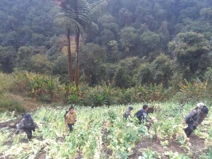 ပုံ-၂၀၁၈ ခုနှစ်က ချင်းပြည်နယ် တွန်းဇံမြို့နယ်က ဘိန်းခင်းများကို အစိုးရကဖျက်ဆီးသည့်ပုံများ
