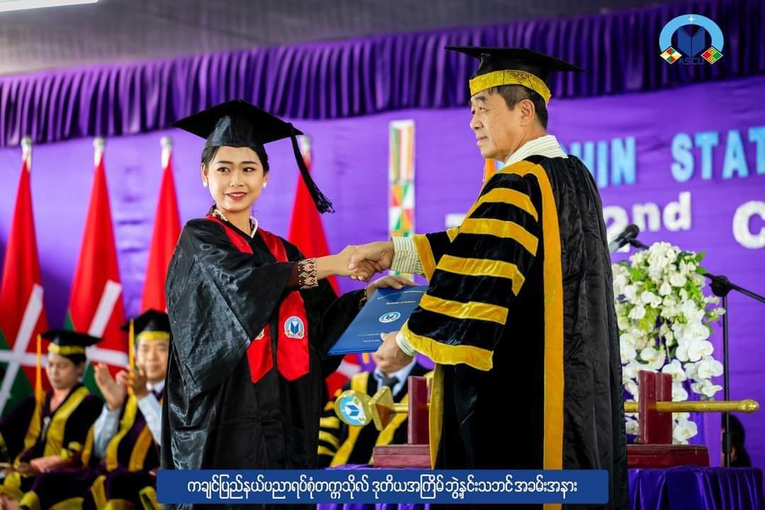 ကချင်ပြည်နယ် လိုင်ဇာမြို့မှာ စစ်ရေးအခြေအနေတင်းမာနေတဲ့ကြားက ကချင်ပြည်နယ်ပညာရပ်စုံတက္ကသိုလ်၏ (KSCU) ဒုတိယအကြိမ် ဘွဲ့နှင်းသဘင် အခမ်းအနားကို အောင်မြင်စွာပြုလုပ်နိုင်ခဲ့တယ်လို့ တက္ကသိုလ်ရဲ့ ဒုအဓိပတိဖြစ်သူ ဆရာ ဒေါက်တာ ဦးအောင်နိုင်ကပြောပါတယ်။