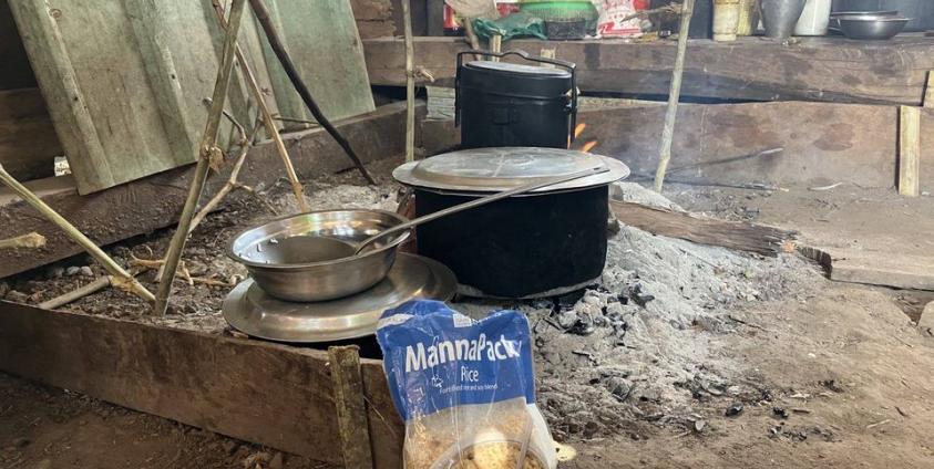 ကရင်နီပြည်၊ ဒီးမော့ဆိုမြို့နယ် အရှေ့ဘက်ခြမ်း စစ်ရှောင်စခန်း တစ်နေရာမှာ စားနပ်ရိက္ခာ ပြတ်တောက်လုနီးပါး ဖြစ်နေတာကြောင့် တချို့မိသားစုတွေမှာ မနက်ပိုင်း ထမင်းချက်စားပြီး ညနေပိုင်းကို ဆန်ပြုတ်ချက်စားနေကြရတယ်လို့ စစ်ရှောင်တွေဆီကနေ သိရပါတယ်။