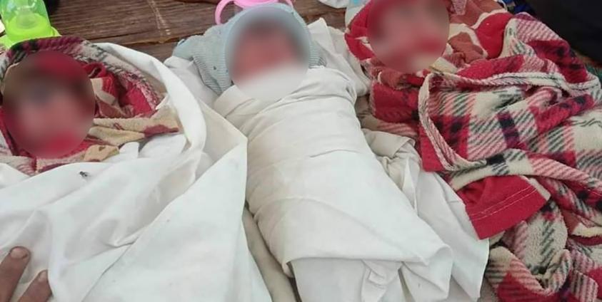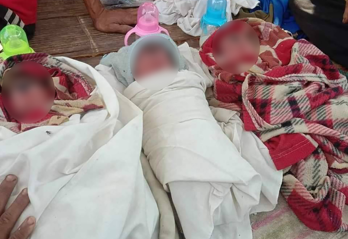 သံတောင်အထူးဒေသနယ်မြေဖြစ်သော လိပ်သိုအမှတ်(၂)ဒေသခွဲနေ အဆိုပါလေးမွှာပူးကိုယ်ဝန်ဆောင်မိခင်မှာ လမ်းကူးရွာရှိ၎င်းပိုင်ခြံအတွင်း စစ်ဘေးရှောင်နေထိုင်စဥ် ကျန်းမာရေးဆေးပေးခန်းမရှိသည့်အခြေအနေကြောင့် သာမန်လက်သည်ဖြင့်သာ ကလေးမွေးဖွားခဲ့ရသလို ကလေး(၃)ဦးမွေးအပြီး အားအင်ကုန်ခမ်း သေဆုံးခဲ့ရခြင်းဖြစ်သည်။
