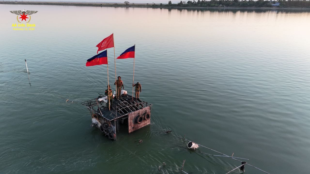ဖေဖော်ဝါရီလအတွင်း ကျောက်တာ်မြို့နယ်တွင် ရေကြောင်းတိုက်ပွဲအောင်နိုင်မှုအပြီး တွေ့ရသော AA တပ်ဖွဲ့ဝင်များ။ (ဓာတ်ပုံ - AA Info Desk)