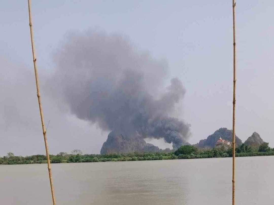 ပုံစာ - စစ်ကောင်စီတပ်ရဲ့ ကြည်း၊ရေ၊လေ ပစ်ခတ်မှုကြောင့် ဓမ္မသကျေးရွာ မီးလောင်ပျက်စီးခဲ့စဉ်။