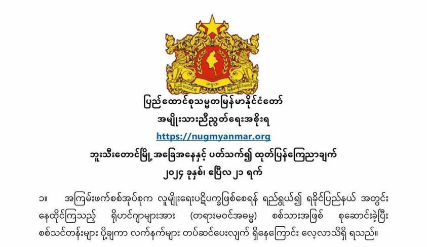 အကြမ်းဖက်စစ်ကောင်စီသည် ရခိုင်ပြည် တွင် လူမျိုးရေး ပဋိပက္ခ အရှိန်မြင့်တက်လာအောင် ယုတ်မာကောက်ကျစ်သည့် အကြံဆိုးဖြင့် ပြုလုပ်နေကြောင်း အမျိုးသားညီညွတ်ရေးအစိုးရ (NUG) က ထုတ်ပြန်ကြေညာသည်။