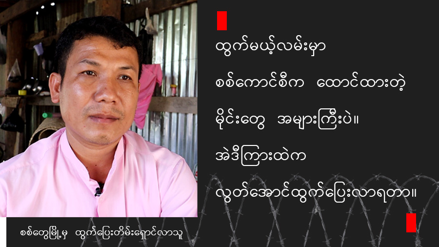 သွားတဲ့လမ်းမှာ စစ်ကောင်စီနေဗီတွေက သေနတ်နဲ့ လှမ်းပစ်နေတာတွေကို ကြုံခဲ့ရတယ်။ ဒါပေမယ့် ကျနော်တို့က ငြိမ်ငြိမ်လေးနေကြတယ်၊ ဖုန်းမီးလည်းမထွန်းဘူး၊ အော်လည်းမအော်ဘူး။ သူတို့ကလည်း နီးနီးလေးလာပြီး မပစ်ရဲဘူးလေ။ မြို့ပေါ်က လူတွေဆိုရင် ထွက်ပြေးဖို့ ပိုခက်ခဲတယ်။ အသိမိတ်ဆွေတွေမရှိရင် အဆက်အသွယ်ရဖို့ ခက်ခဲတယ်။ အဆက်သွယ်ရရင်တောင် အသက်အန္တရာယ်က စိုးရိမ်ရသေးတယ်။ သွားမယ့်သူက ရဲရဲတင်းတင်း သွားရဲဖို့ လိုသေးတယ်။ ပွဲစားက အာမမခံဘူး။ သွားမယ့်သူက သွားမယ်ဆိုရင် ပွဲစားက ပို့ပေးရုံပဲ။ ခိုးပြီးသွားရတာ ဆိုတော့ အသက်နဲ့လုံခြုံရေးက အာမခံချက်မရှိဘူး။ ကံမကောင်းရင် ပါသွားမယ်။ ကံကောင်းရင် လွတ်သွားမယ်။