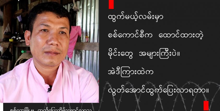 စစ်ကောင်စီကလည်း ဒါတွေကို ဘာမှမလုပ်ဘူး၊ မသိဟန်ဆောင်ထားတယ်။ ပြောရရင် စစ်ကောင်စီနဲ့ အပေါင်းအပါတွေပေါ့။ အဲဒီအထဲမှာ ALP အဖွဲ့လည်း ပါတယ်။ ALP အဖွဲ့ဆိုရင် လူငယ်တွေကို ဖမ်းတယ်၊ ပိုက်ဆံတောင်းတယ်။ မပေးရင် ALP ထဲဝင်ရမယ်၊ မဝင်ရင် မလွှတ်ဘူး၊ သတ်ပစ်မယ်လို့ ခြိမ်းခြောက်တော့ ကြောက်ပြီး ALP အဖွဲ့ထဲကို ဝင်ကြရတာတွေလည်း ရှိတယ်။