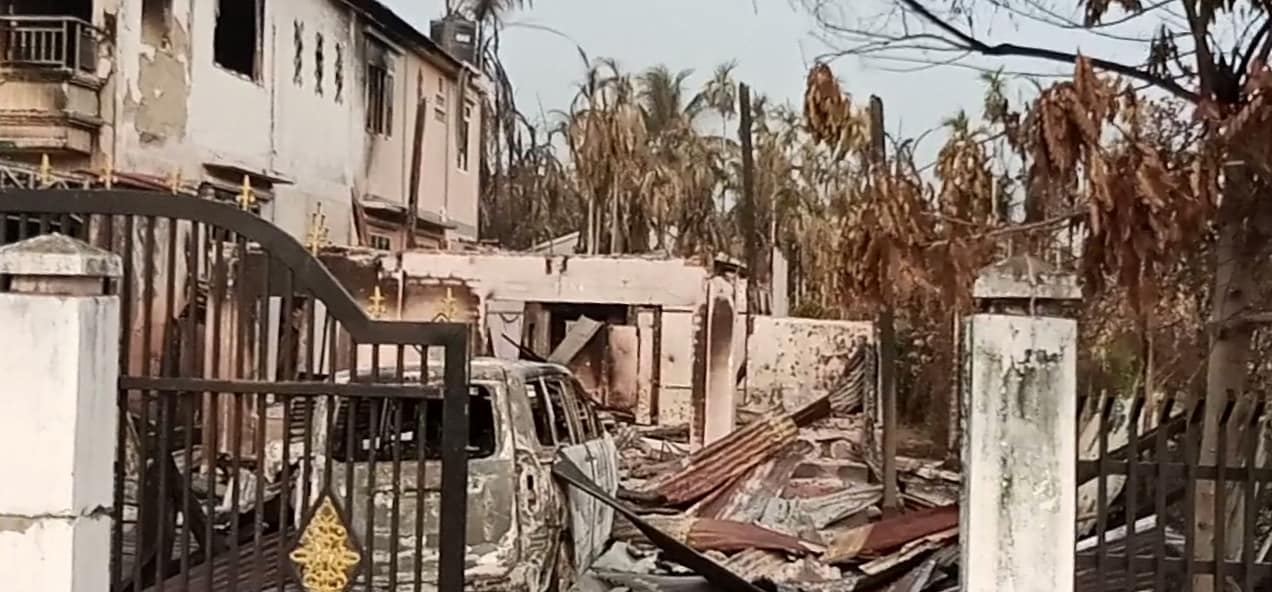 ဘူးသီးတောင်မြို့ရှိ နေအိမ်များ မီးရှို့ဖျက်ဆီးခံထားရမှု။ ဓာတ်ပုံ- CJ