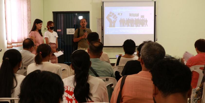 ယနေ့ အခမ်းအနားတွင် မြန်မာနိုင်ငံအတွင်းရှိအလုပ်သမားများနှင့် ပြည်ပသို့ရောက်ရှိနေသည့် ရွှေ့ပြောင်း အလုပ်သမားများ၏ လုပ်ငန်းခွင်အတွင်း ငွေကြေးအမြတ်ထုတ်ခြင်း၊ အဓမ္မဖိအား ပေးခိုင်းစေခြင်း နှင့် ခြိမ်းခြောက်ခံရခြင်း စသည့်အလုပ်သမားများ၏ တွေ့ကြုံခံစားနေရမှုများကို သက်ဆိုင်ရာ အလုပ်သမားခေါင်း ဆောင်များက ရှင်းပြပြောဆိုမှုများပြုလုပ်ခဲ့ကြသည်။