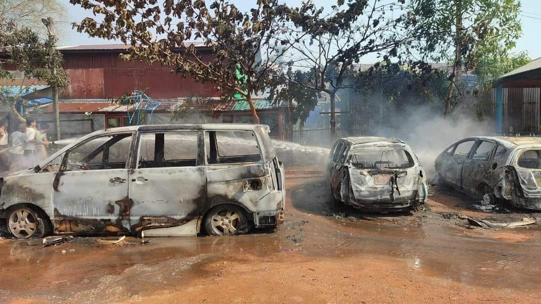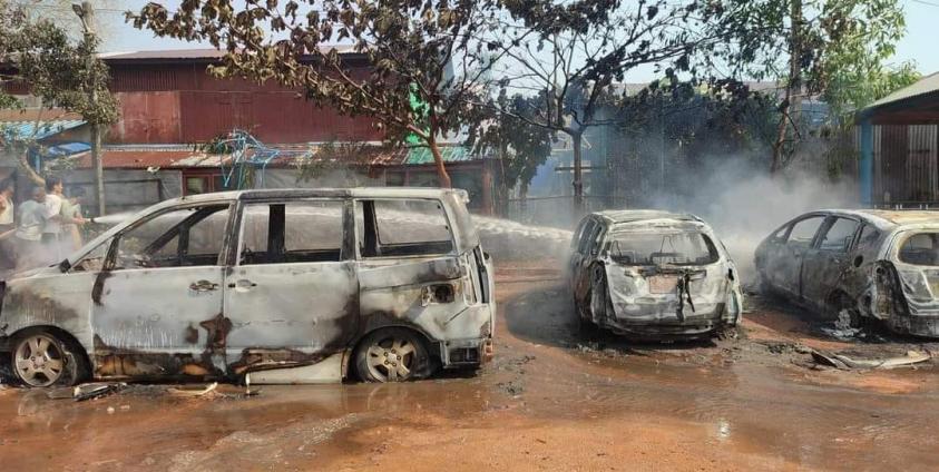 အဲဒီနောက် စစ်ကောင်စီရဲ့ ကားသုံးစီးကို တော်လှန်ရေအင်အားစုပူးပေါင်းတပ်ဖွဲ့တွေကနေ ဓါတ်ဆီလောင်းပြီး မီးရှို့ဖျက်ဆီးခဲ့တဲ့အတွက် ကားသုံးစီးလုံး မီးလောင်ပျက်စီးခဲ့ပါတယ်။