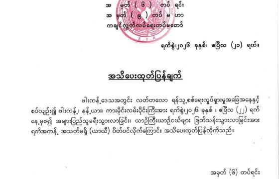 ကချင်ပြည်နယ်အတွက် အဆိုပြုထားတဲ့ ဝန်ကြီး ၇ ယောက်နဲ့ တရားသူကြီးချုပ်၊ ဥပဒေချုပ်၊ စာရင်းစစ်ချုပ်နဲ့...