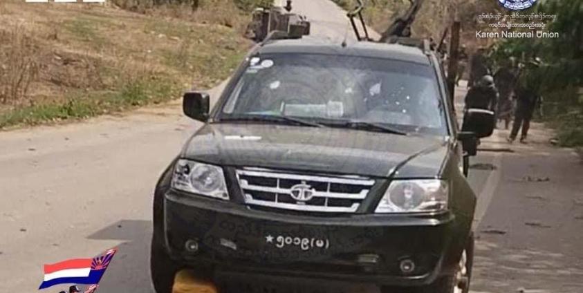 ကော့ကရိတ်-မြဝတီ အာရှလမ်းမပေါ် ဒေါနတောင်ကို တက်လာသည့် စစ်ကောင်စီ၏ အောင်ဇေယျ စစ်ဆင်ရေး စစ်ကြောင်းကို ယမန်နေ့က ကြားဖြတ်တိုက်ခိုက်ခဲ့ခြင်းကြောင့် စစ်ကောင်စီတပ်ဖွဲ့ဝင် ၄ ဦးဒဏ်ရာရရှိကာ ကားတစ်စီးပျက်စီးခဲ့ကြောင်း တော်လှန်ရေးတပ်ဖွဲ့တစ်ဖွဲ့ဖြစ်သော ကျားဖြူစစ်ကြောင်းက ယနေ့တွင် သတင်းထုတ်ပြန်ထားသည်။