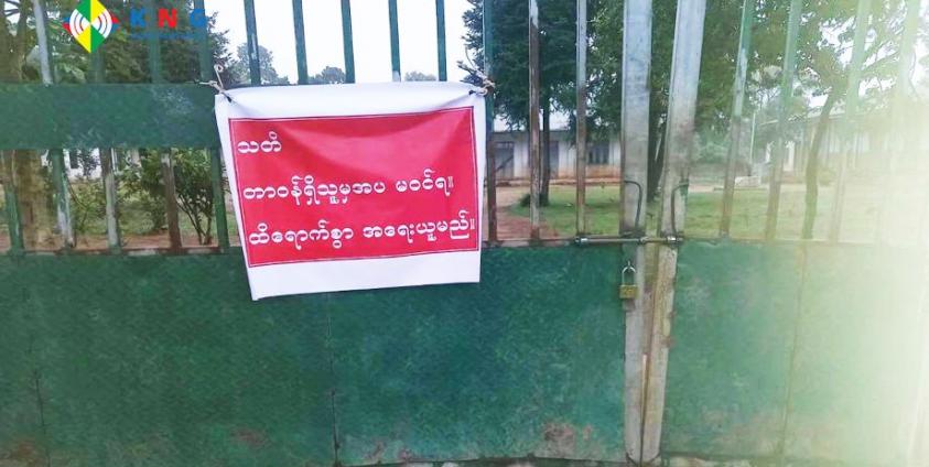 ဇွန် ၂၃ ရက်နေ့ မနေ့ည ၉ နာရီခွဲအချိန်လောက်မှာ တအာင်းလွတ်မြောက်ရေးတပ်မတော် TNLA တပ်ဖွဲ့တွေဟာ အင်အားအလုံးအရင်းနဲ့ ကျောင်းကိုရောက်လာပြီး ကျောင်းဝင်းထဲရှိနေတဲ့ဆရာ၊ဆရာမတွေကို မောင်းထုတ်ခဲ့သလို စာသင်ခန်းအားလုံးကိုလည်း သစ်သားပြားတွေနဲ့ချိတ်ပိတ်ပေးလိုက်တယ်လို့ ကျောင်းတာဝန်ရှိသူတစ်ဦးက Kachin News Group(KNG) ကချင်သတင်းဌာနကို ပြောပါတယ်။