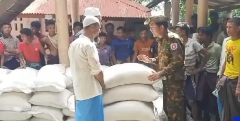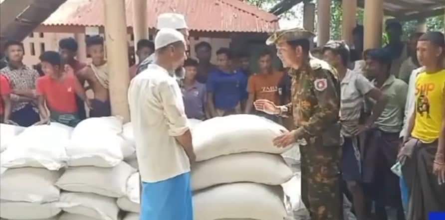 စစ်ကောင်စီသည် ၎င်းဆန်အိတ်များကို မောင်တောမြို့ရှိ မွတ်ဆလင် ဒေသခံများအား ဇွန်လ ၂၂ ရက်နေ့ ဖြန့်ဝေပေးခဲ့ပြီး စစ်ကောင်စီကို ထောက်ခံကြရန် စည်းရုံးမှု လုပ်ဆောင်ခဲ့သည်ဟု မွတ်ဆလင် ဒေသခံတစ်ဦးက ပြောကြားသည်။