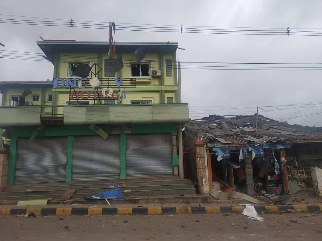 ယမန်နေ့ (ဇွန်လ ၃၀ ရက်) ည ၁၁ နာရီခွဲခန့်တွင် ကျောက်မဲမြို့ ရပ်ကွက်(၁) ပင်လုံလမ်းမကြီးပေါ်ရှိ One Love ဟိုတယ်အနီးသို့ စစ်ကောင်စီတပ်မှ လေကြောင်းဖြင့် ဗုံးကြဲတိုက်ခိုက်ခဲ့ရာ ဟိုတယ်နှင့် အနီးပတ်ဝန်းကျင်ရှိ အရပ်သားနေအိမ် ၂၀ လုံးထက်မနည်း မီးလောင်ပျက်စီးသွားခဲ့ပြီး လူထိခိုက်ဒဏ်ရာရရှိကြောင်း ကျောက်မဲဒေသခံများက ပြောသည်။