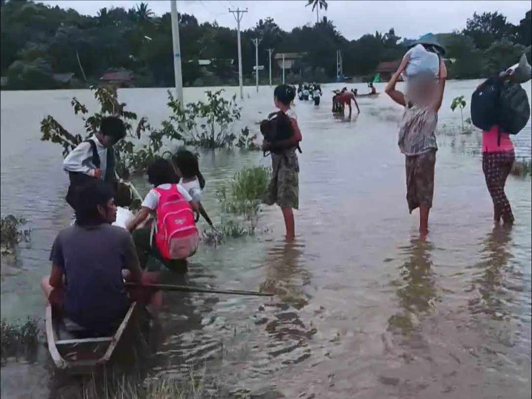 တနင်္သာရီတိုင်း တနင်္သာရီမြို့နယ်မှာ မိုးအဆက်မပြတ် ရွာသွန်းမှုကြောင့် မြို့ပေါ်ရပ်ကွက်တွေနဲ့ ကျေးရွာ ၁၂ ရွာနီးပါးက ဒေသခံပြည်သူ တစ်သောင်းကျော်ဟာ ရေဘေးဒုက္ခနဲ့ ကြုံတွေ့နေရတယ်လို့ ဒေသခံတွေနဲ့ ကူညီပေးနေသူတွေထံက သိရပါတယ်။