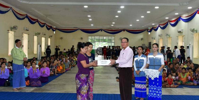 ပြီးခဲ့သည့် ဇူလိုင်လ (၃၀)ရက်နေ့က စစ်ကောင်စီခန့် ပြည်နယ်ဝန်ကြီးချုပ် စောမြင့်ဦးနှင့်အဖွဲ့မှ လှိုင်းဘွဲမြို့နယ် လှိုင်းဘွဲမြို့၊ အောင်ဆန်းခန်းမနှင့် ကမော့ကချူးကျေးရွာရှိ ယာယီရေ ဘေးကယ်ဆယ်ရေးစခန်းသို့ လာရောက်၍ ရေဘေးသင့်ပြည်သူစုစုပေါင်း ၆၀၀ ကျော်အတွက် ထောက် ပံ့ရိက္ခာအဖြစ် ဆန်၊ ဆီ၊ ခေါက်ဆွဲခြောက်၊ ကြက်ဥနှင့် ဆန်ရိက္ခာဖိုးငွေကျပ် (၁,၃၀၀,၀၀၀)သိန်းကျော်ကို ပေးအပ်ခဲ့ခြင်းဖြစ်သည်။