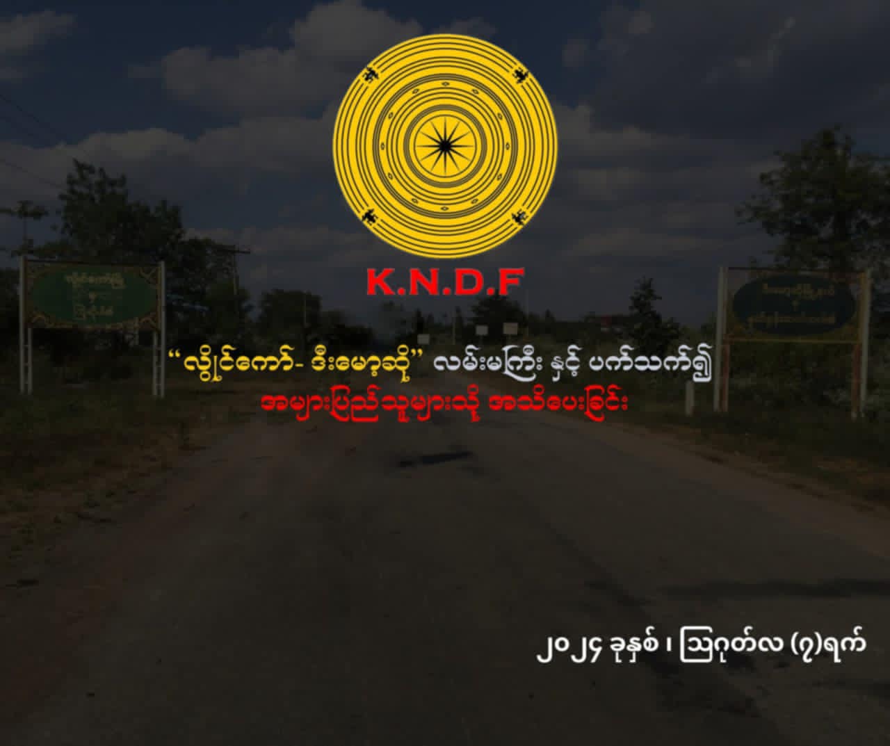 လွိုင်ကော်တိုက်ပွဲများကြောင့် ဒီမောဆိုလမ်းနှင့် အခြားလမ်းသွယ်များ မသွားရန် KNDF သတိပေး