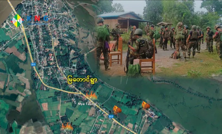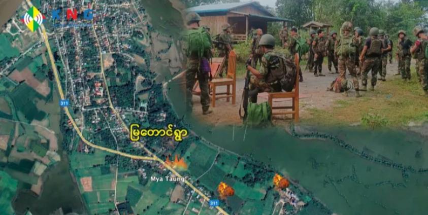 ထီးချိုင့်မြို့နယ် ဧရာဝတီမြစ်တစ်ဖက်ကမ်းက မြတောင်စစ်ကောင်စီတပ်စခန်းကို KIA နဲ့ PDF ပူးပေါင်း အဖွဲ့တွေက ဝင်ရောက်တိုက်ခိုက်နေတာဖြစ်ပြီး ဩဂုတ်လ ၂၁ ရက်နေ့မှာတော့ အဲ့ဒီတပ်စခန်းရဲ့ ကာကင်း စခန်း ၃ ခုကို သိမ်းပိုက်ရရှိခဲ့တာလို့ သိရပါတယ်။