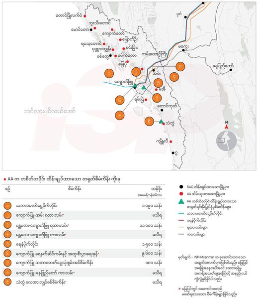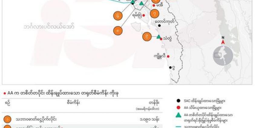ရခိုင်ပြည်တွင် တရုတ်၏ ရင်းနှီးမြှုပ်နှံမှုစီမံကိန်း ၁၁ ခုရှိသည့်အနက် စီမံကိန်း ၉ ခုကို အာရက္ခတပ်တော်(AA)က တစိတ်တပိုင်း ထိန်းချုပ်ထားပြီဖြစ်ကြောင်း မြန်မာ့မဟာဗျူဟာနှင့် မူဝါဒလေ့လာရေး အင်စတီကျု (ISP-Myanmar) ၏ အစီရင်ခံစာတွင် ဖော်ပြသည်။